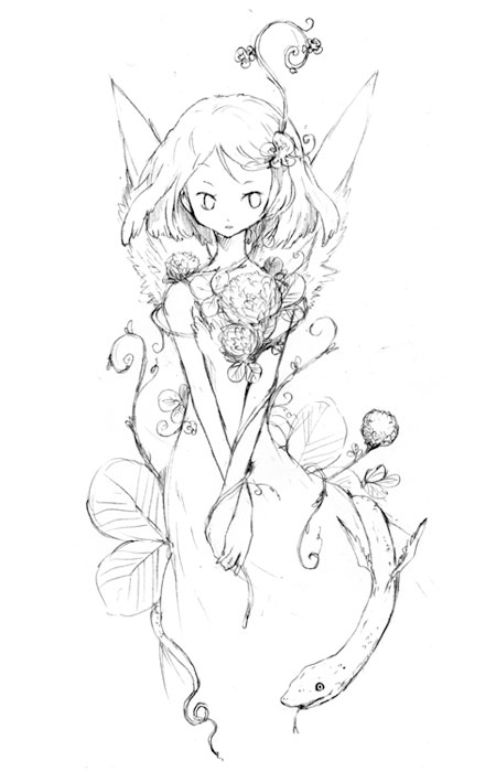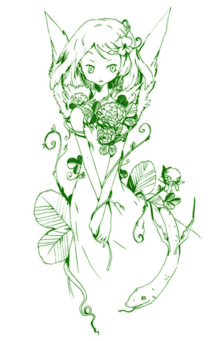 四葉かいてたらいつのまにか白詰草かいてて、最終的にはへびいちごかいてた収拾つかない絵。